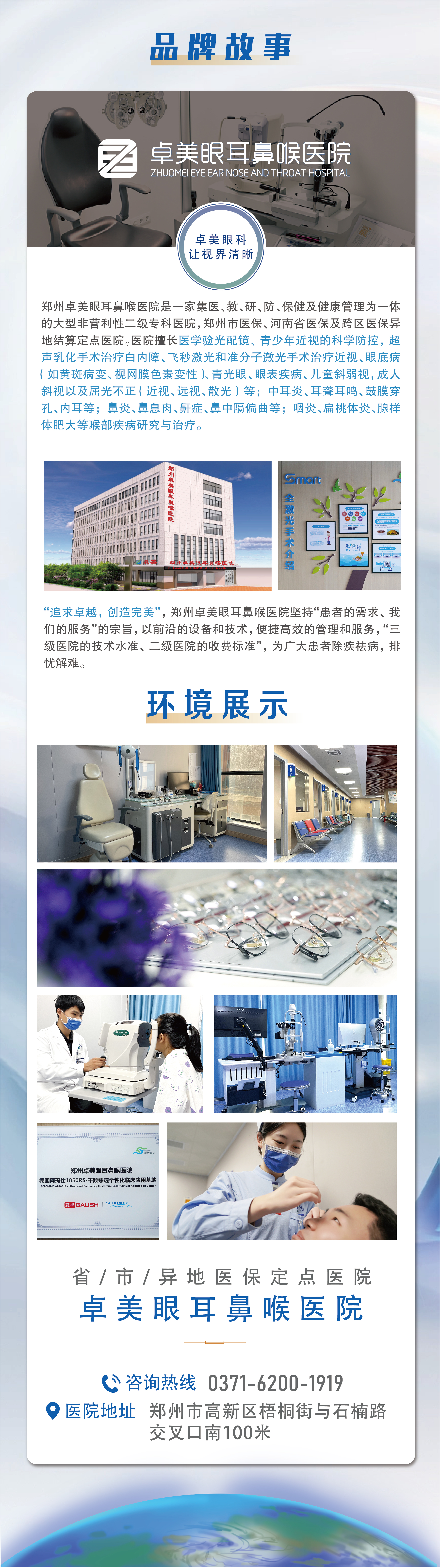 郑州卓美眼耳鼻喉医院是以国家“二级专科医院”的建设规范为标准,以“三级医院的技术水准、二级医院的收费标准”惠及患者。
