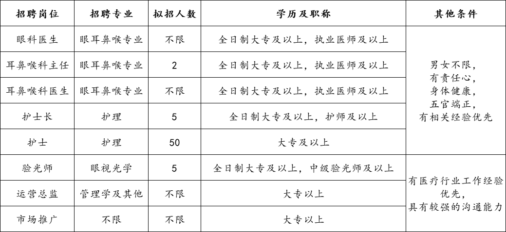 因医院工作需要,即时招聘医疗卫生等人员,具体招聘事宜如下: